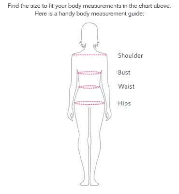 Size | To Fit Bust (in) | To Fit Waist (in) | To Fit Hip (in) |